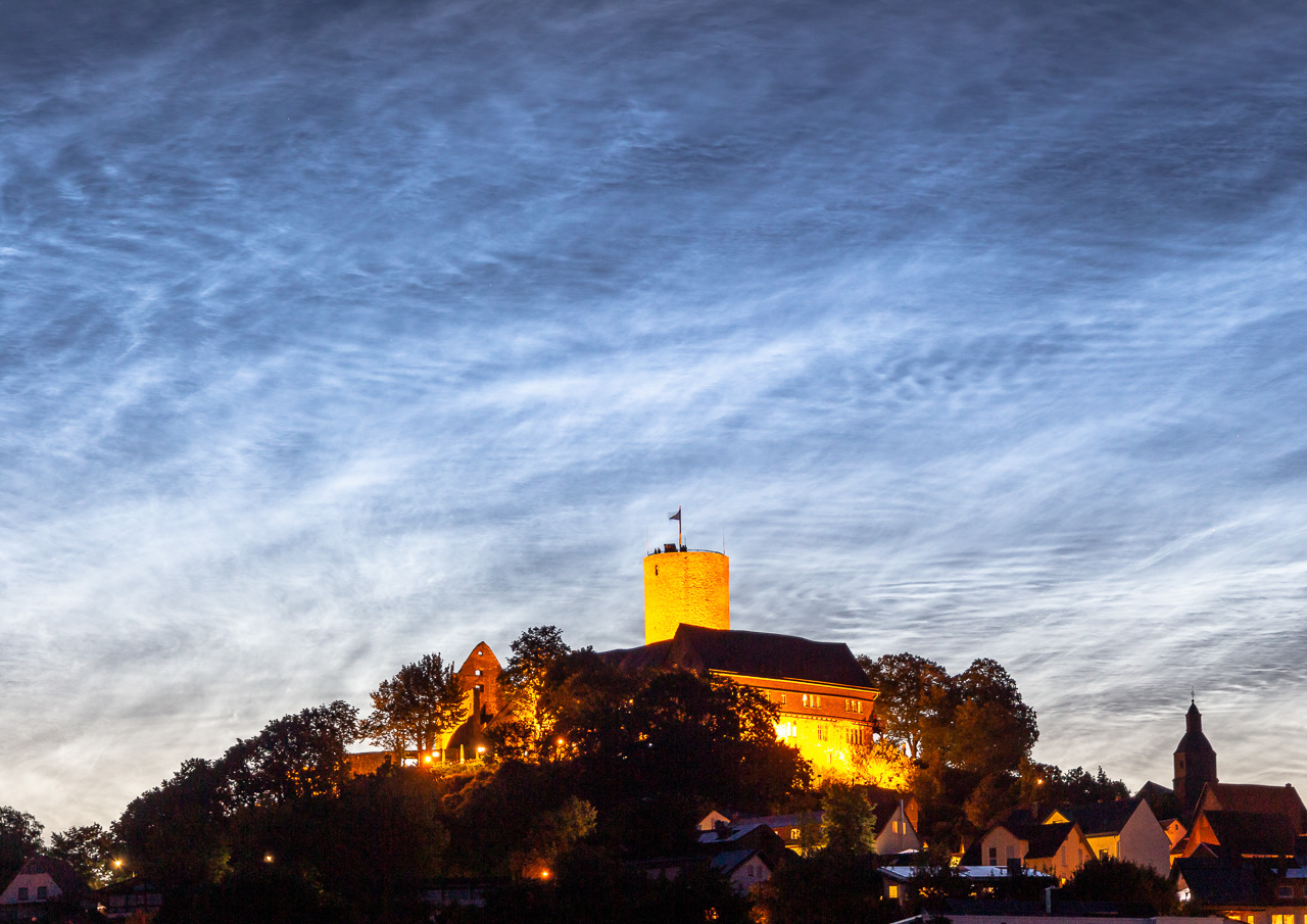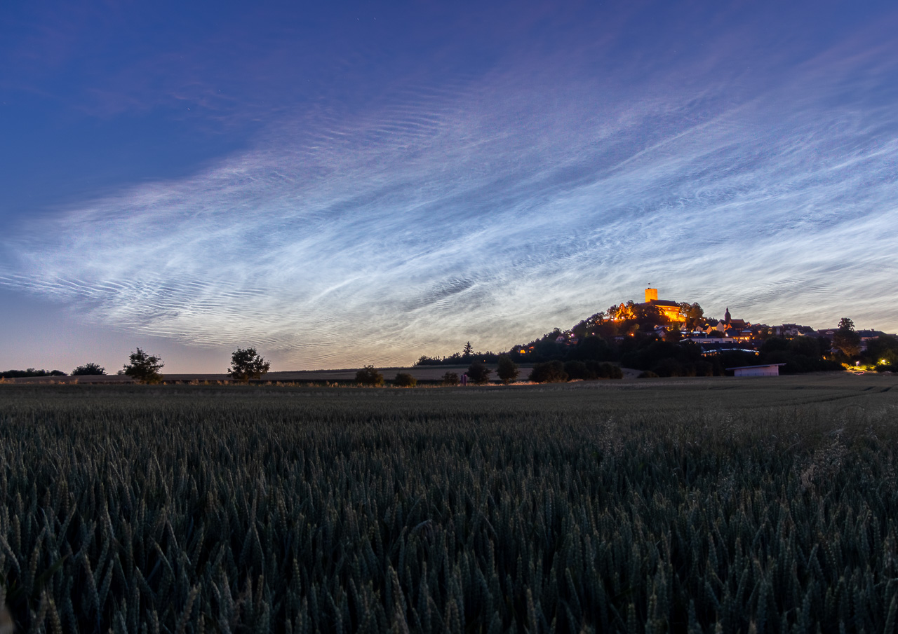 Leuchtende Nachtwolken (Noctilucent clouds / NLC) ber der Burg Gleiberg.Foto: Lars PetrickInstagram: lars.petrick
