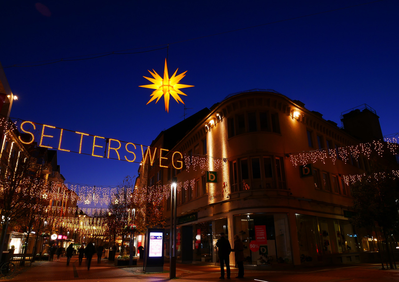Seltersweg erscheint trotz Lockdown in weihnachtlicher Stimmung und Lichterglanz. Foto: Holger Fischer