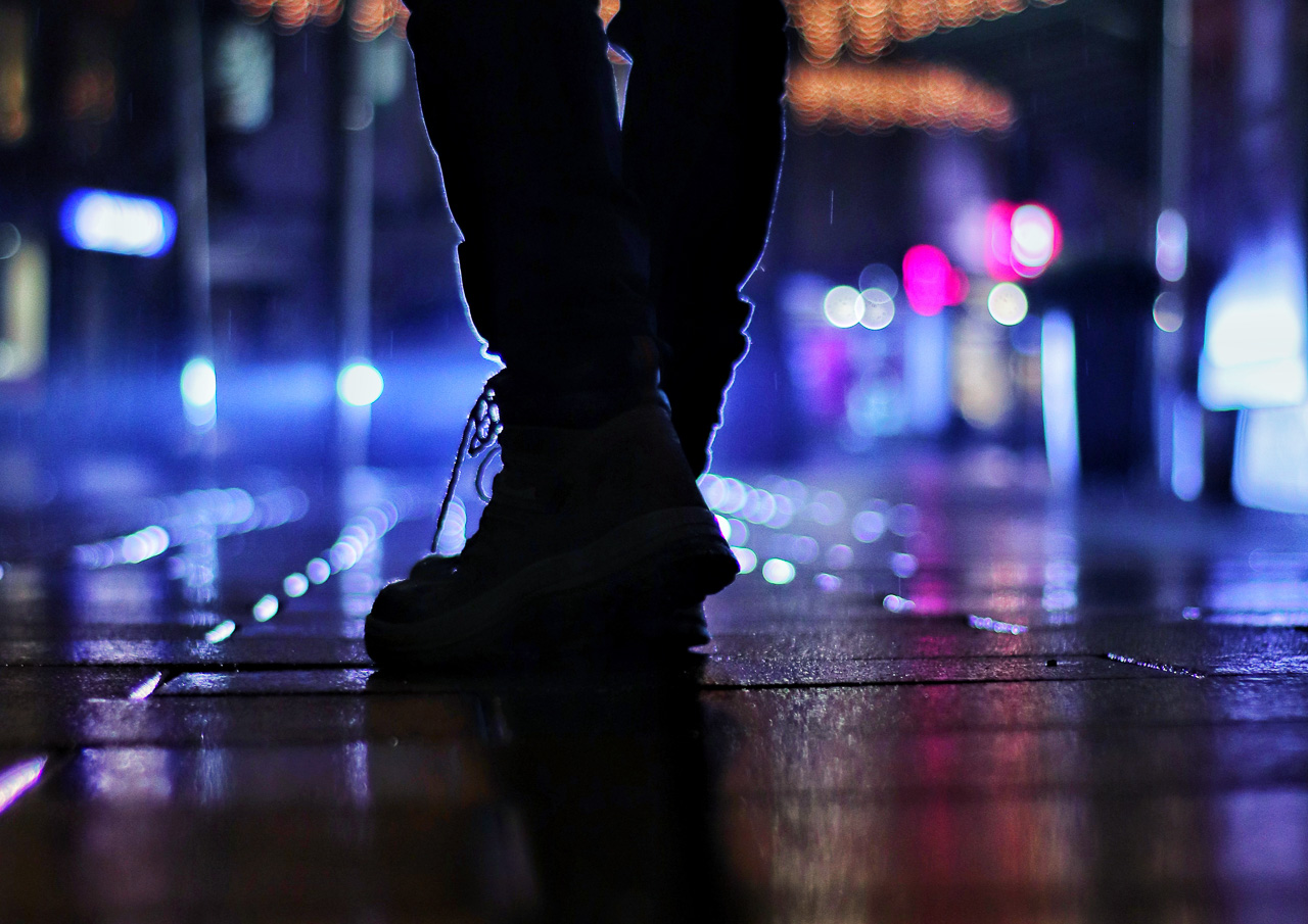 Bei Regen, in Gießen, durch die Innenstadt zu laufen, ist mit eine der Schönsten Zeiten, zum Fotografieren. Überall kommen Lichter hervor und es spiegelt sich an jeder Ecke etwas in den nassen Wegen. Foto: Sebastian Jost