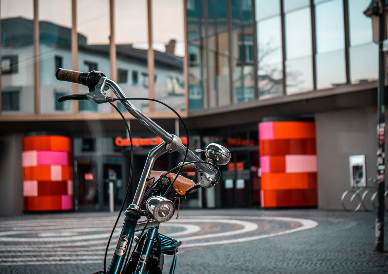 Typisch für Gießen ist die allgegenwärtige Radfahrer Präsenz. Dieses wunderschöne Vintage Fahrrad mitten in der Innenstadt ist das beste Beispiel dafür. Foto: Eduard Demin