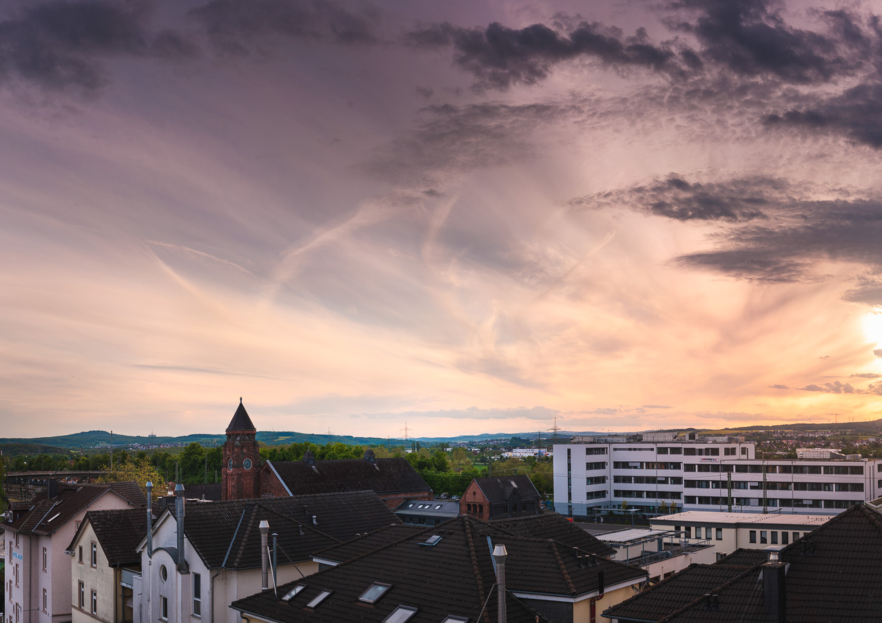 Ein Abendblick über Gießen mit etwas Überblick zu finden ist schwer. Endlich gefunden passte dann auch das Licht nach einem ordentlichen Gewitter! Foto: Felix Hees
