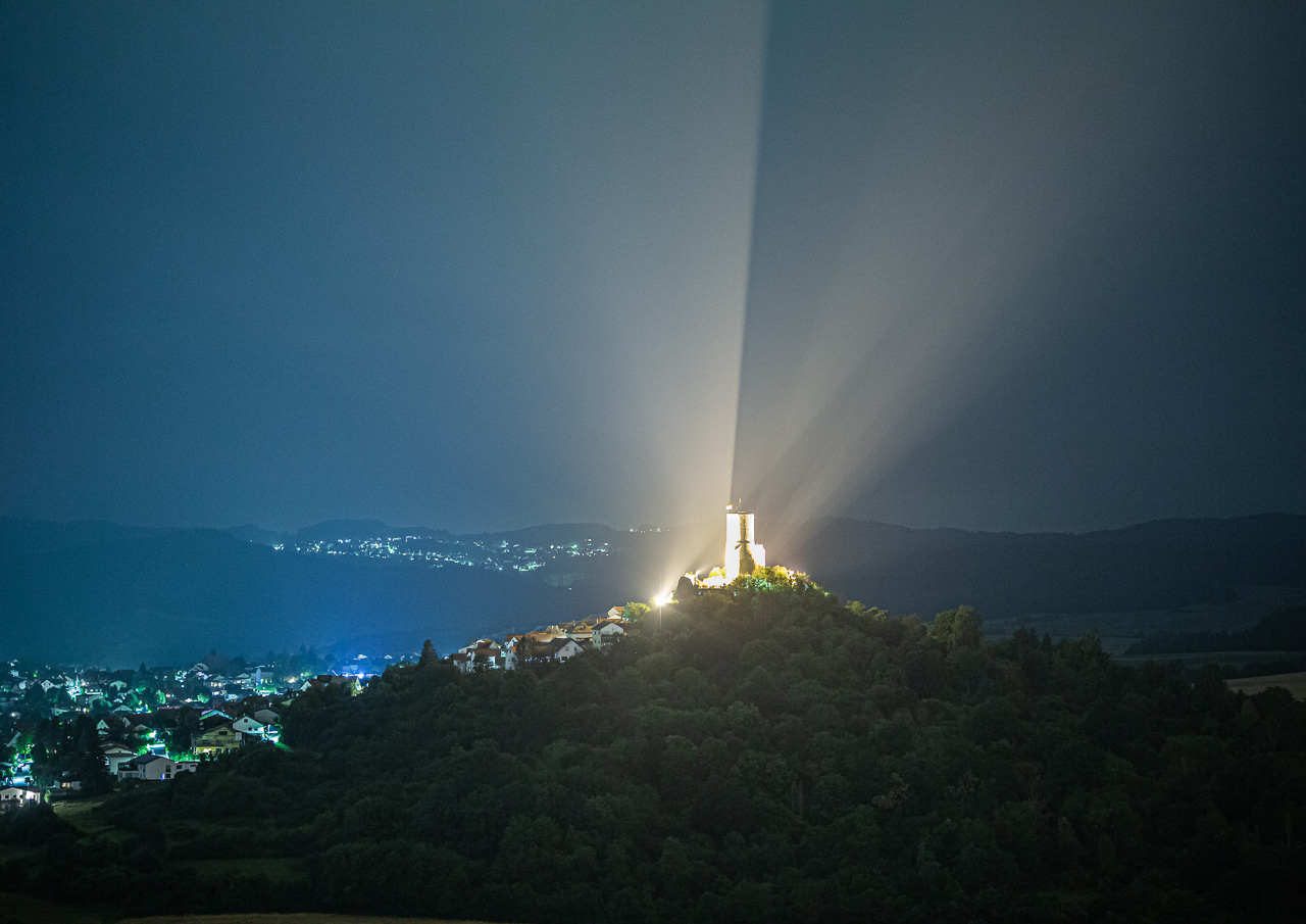 Die Grüninger Warte nach Sonnenuntergang, Foto: Stefan Cebulla