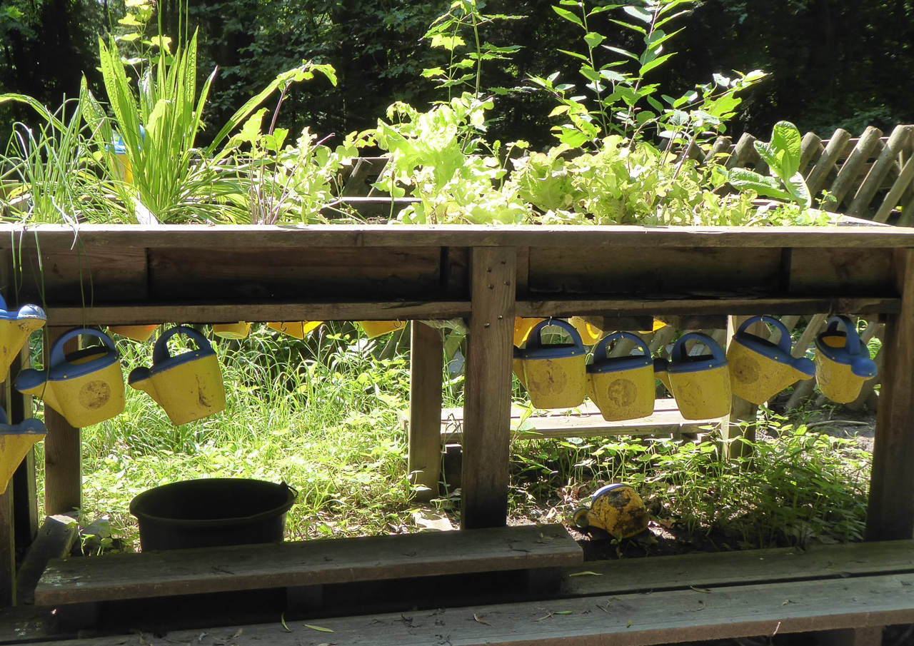Fleißige Zwerge üben urbanes Grätnern mitten in der Stadt. Gesehen im Waldkindergarten der Stadt Gießen am Schiffenberg. Foto: Anette Piske